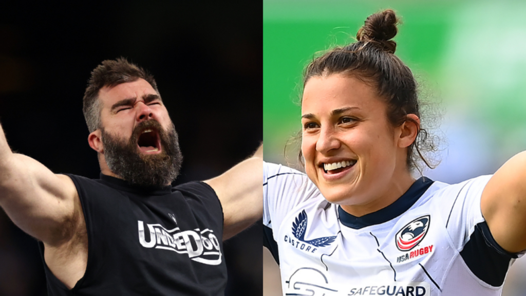 Watch Jason Kelce Arm Wrestle Rugby Star Nicole Heavirland While Wearing a Beret in Paris
